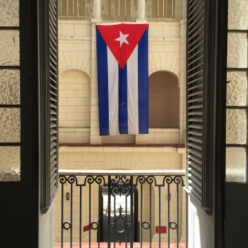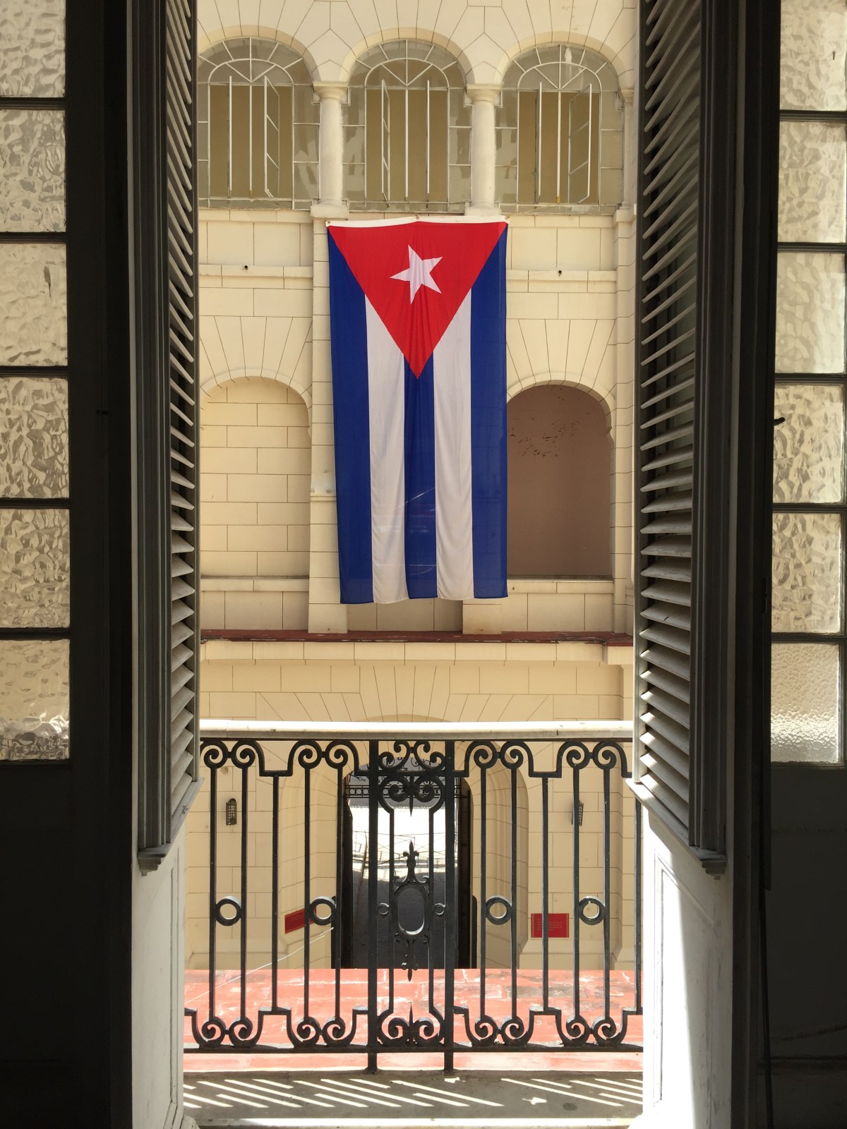 The courtyard inside the Museo de la Revolución and the Cuban flag