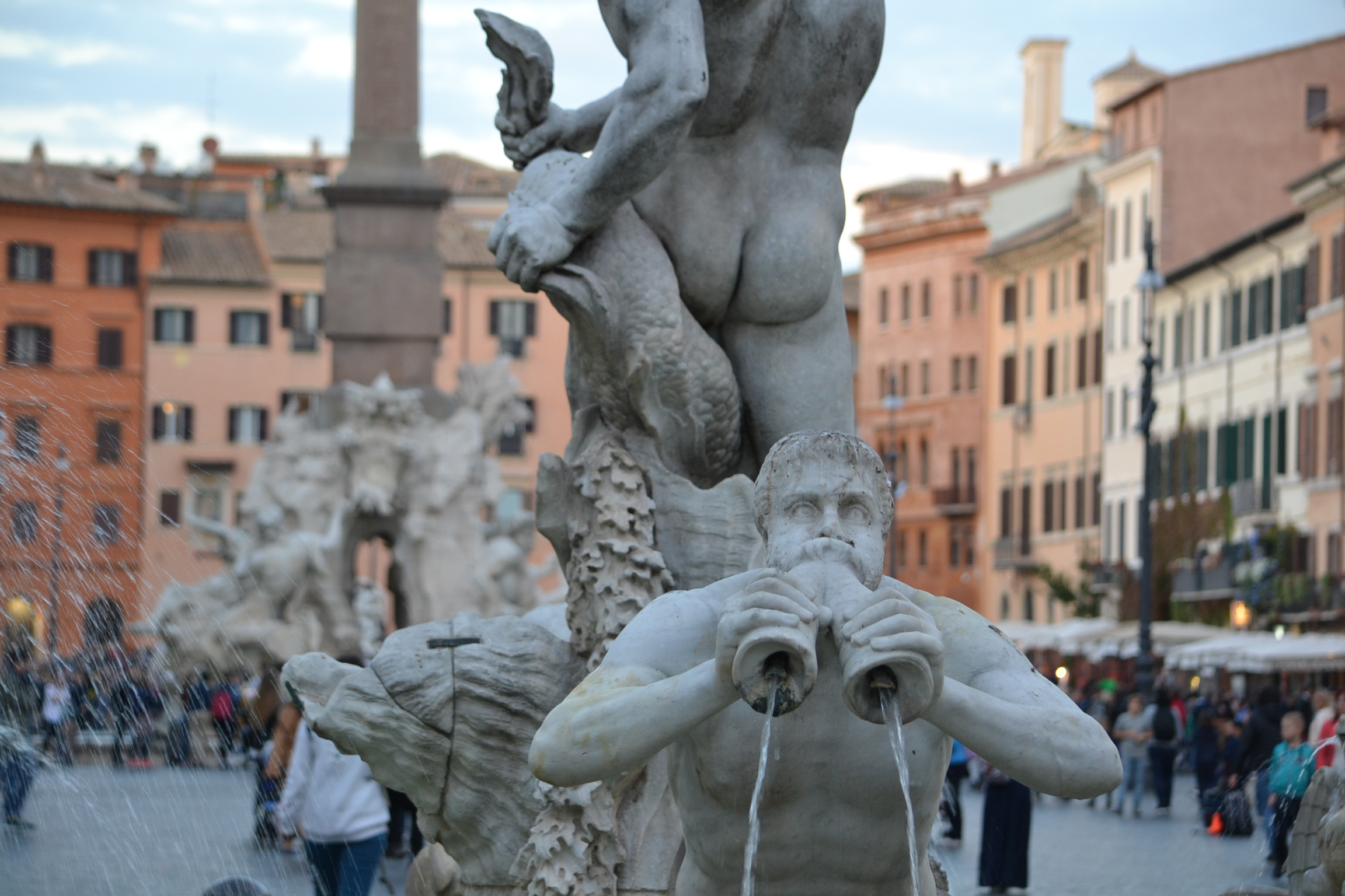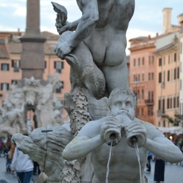 One of the four rivers statues in the center of Piazza Navona