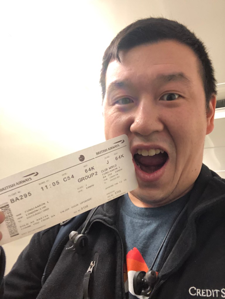 I miss the experience of handing my boarding card to an airline employee at Heathrow while I was trying to board a flight from London to Chicago, watching her tear up my card, and then smile as she told me I was upgraded to business class.