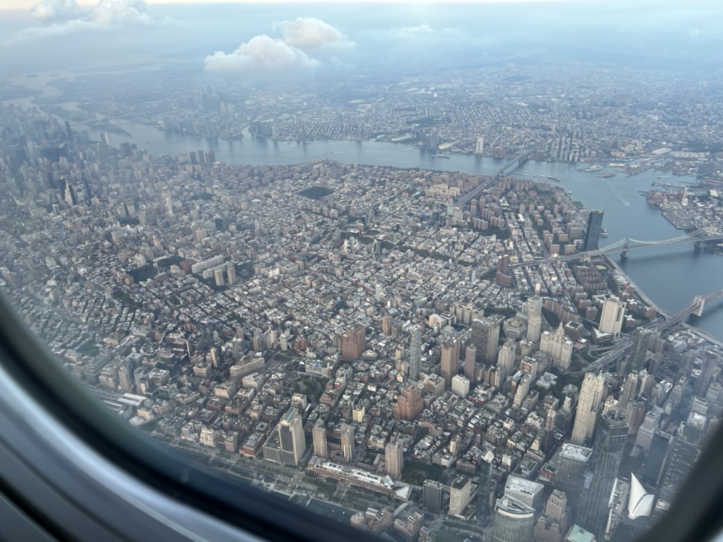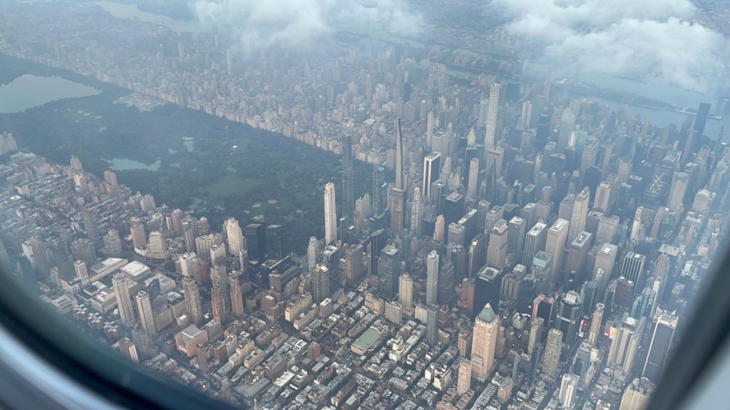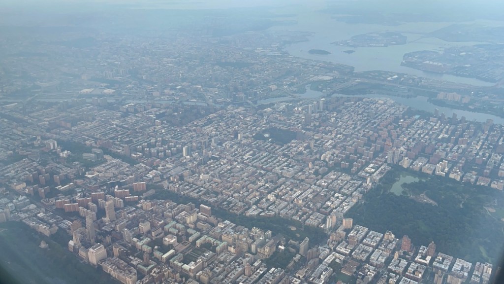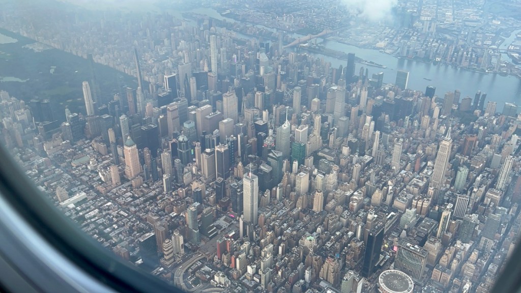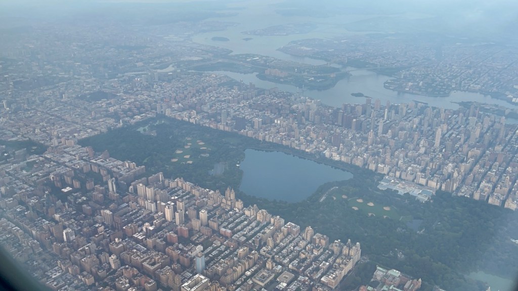 After putting my feet up at the Admirals Club at O’Hare, the flight to New York was a quick couple of hours – and although I miss the miles that come with an SFO-LGA flight, I have come to appreciate how much easier and faster it is to get to NYC from Chicago. And flowing in low over Manhattan always provides a chance to find the gems of the city. From Battery Park City to Yankee Stadium, from the southern edge of Central Park to the Verrazano bridge.