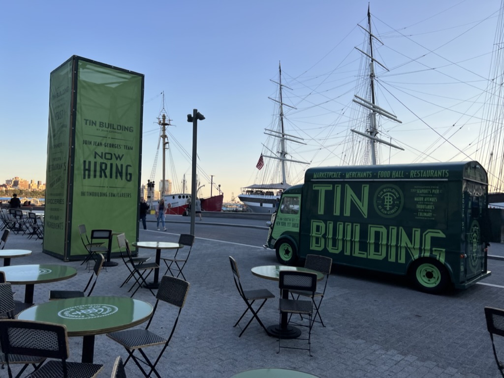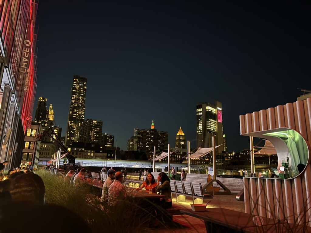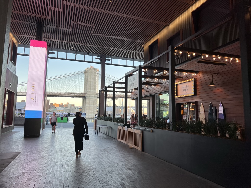 Dinner brought me and my team to Malibu Farm which sits near the South Street Seaport. I was very pleasantly surprised as the seaport has always been a tourist trap in my mind (and it is) – but the food and drink here were excellent (especially on a warm night for an outdoor dinner) and served up views of the Brooklyn Bridge to boot! I especially loved the DJ who was spinning excellent tunes nearby.