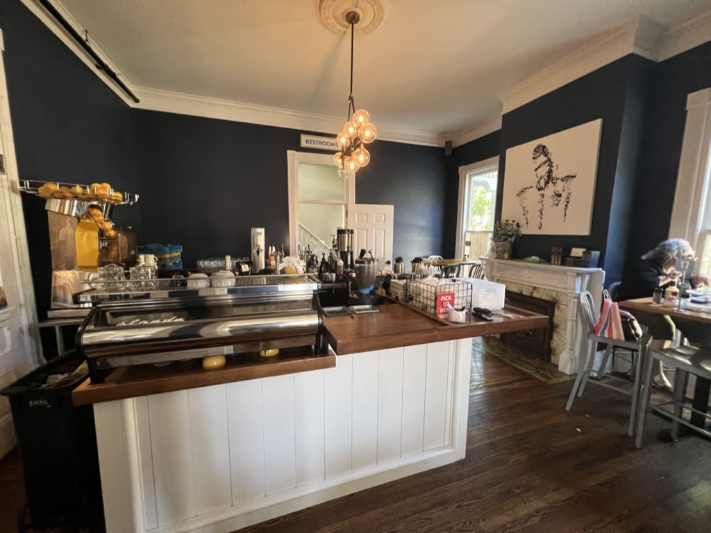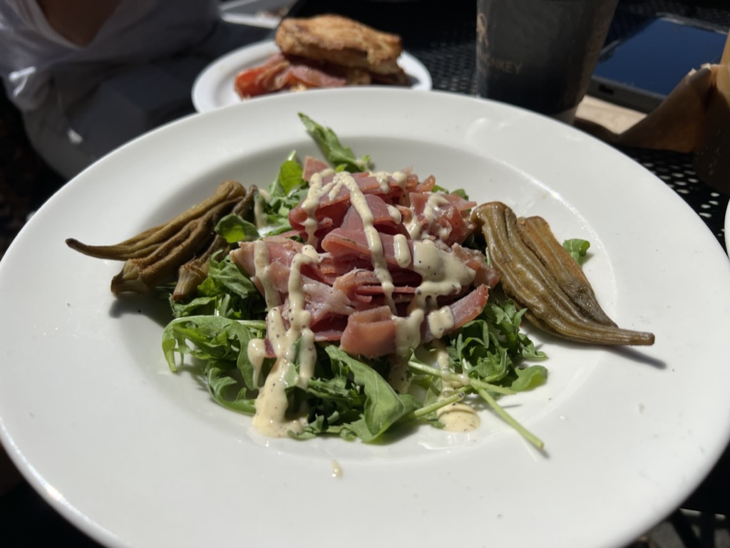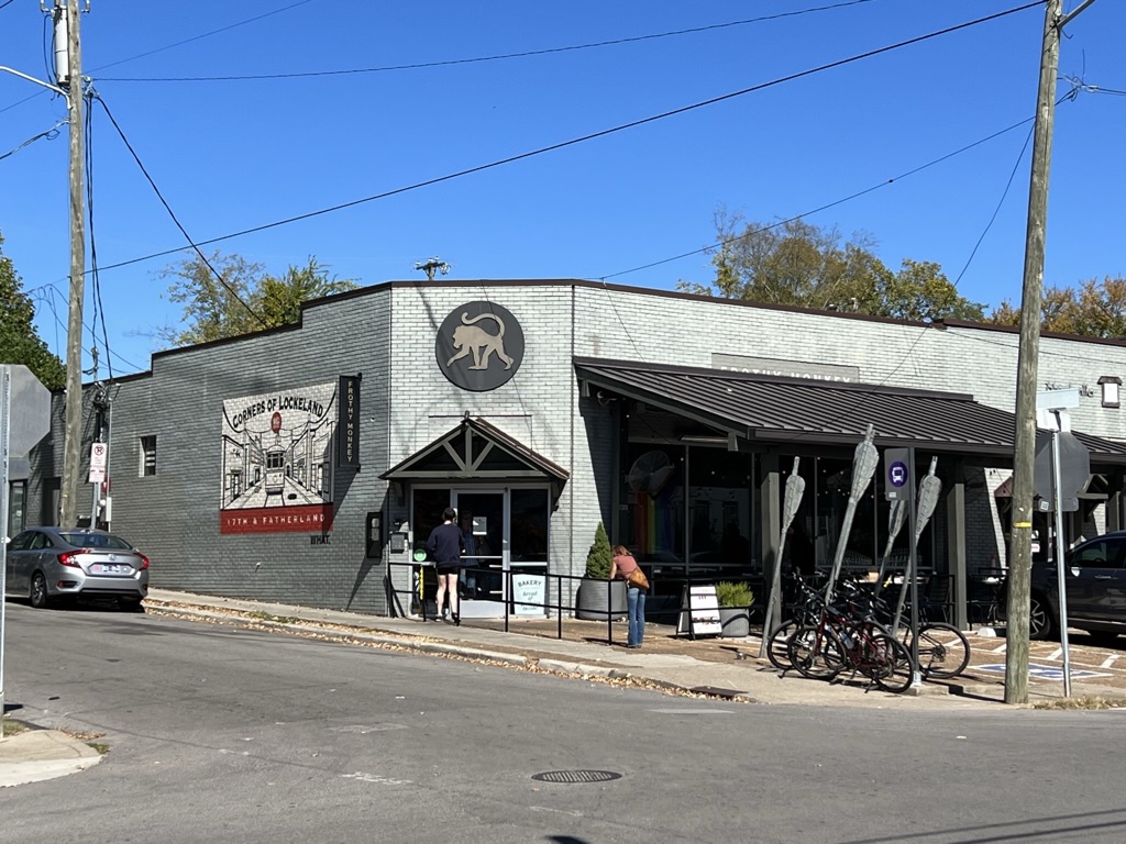 We picked him up and drove to east Nashville to meet Caitlin’s friends for breakfast at Frothy Monkey. I enjoyed studying at the Frothy Monkey outpost closer to my house when I was a student, and this place was great for a sunny brunch in their covered outdoor space. I had forgotten why East Nashville is both considered charming and, like Brooklyn, has gotten wildly expensive in the last ten years (a combination of space, proximity to downtown Nashville, and charming homes).