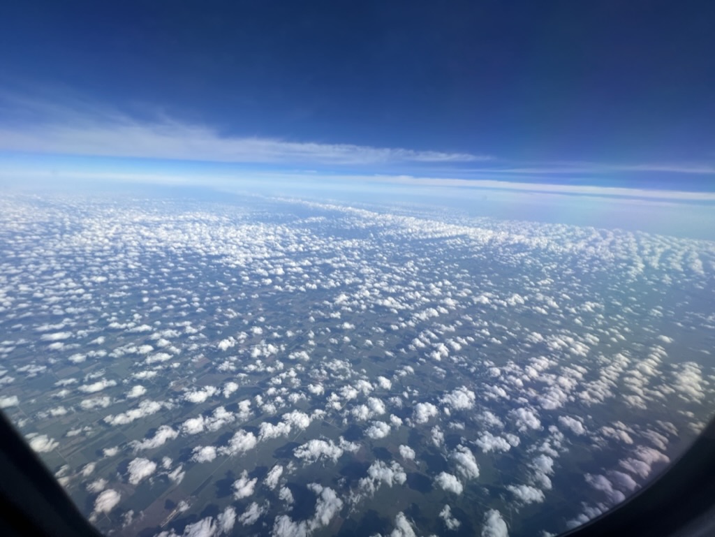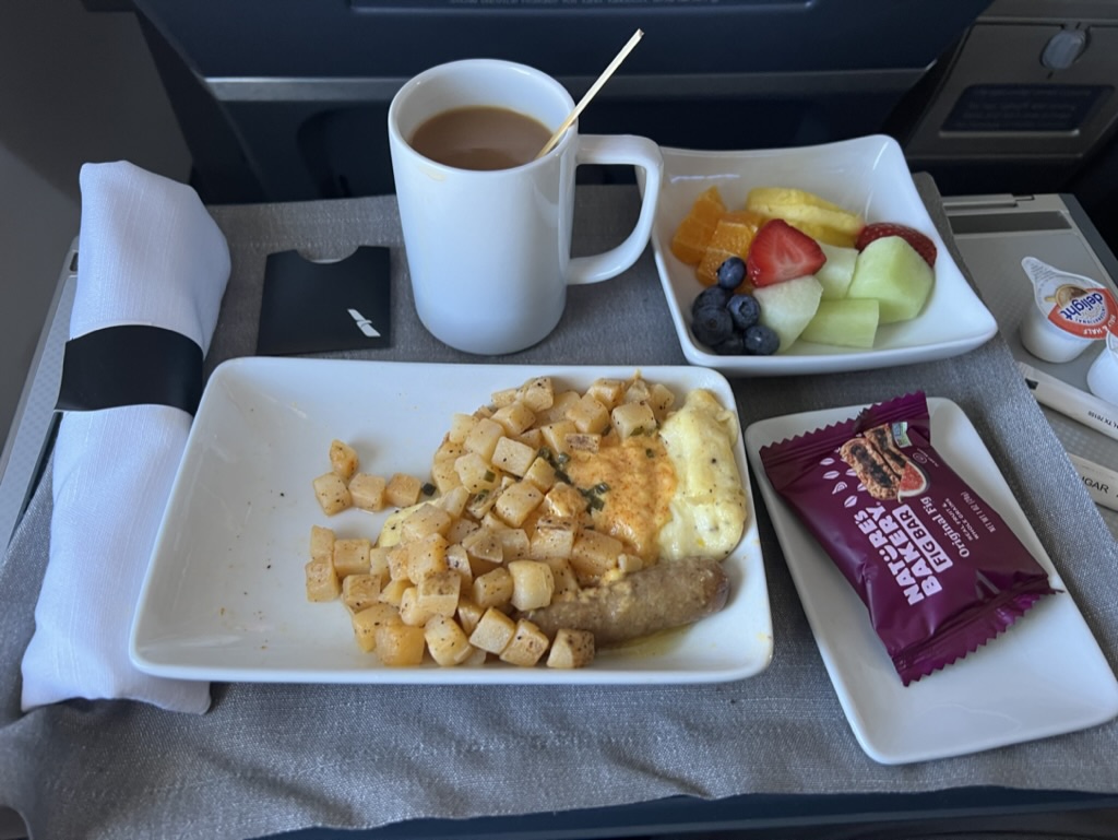 I barely made it to the airport in time, whizzed through security, and by some miracle made it onto my plane – where I had been upgraded and even got served a hot breakfast!